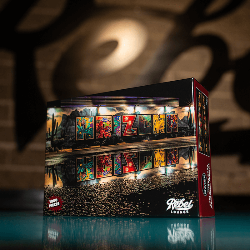 The Rebel Lounge’s 1,000-piece puzzle is an ode to the “Arizona” mural that graces the venue’s east wall. The mural was a collaboration between eight local artists and highlights the diversity of our community and beautiful state.