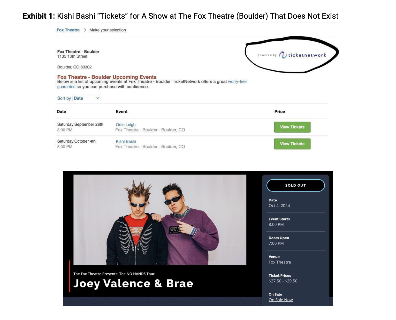the sale of “tickets” for shows that do not exist or are being sold for the wrong date and/or